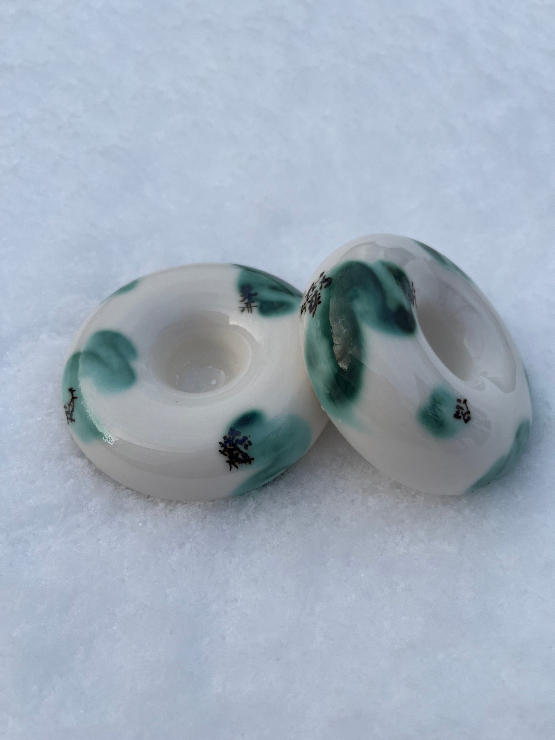 STRØG - lysestagen er skabt på min drejeskive, de males med kobber og jern, som giver et flot farvespil sammen med den hvide porcelæn.